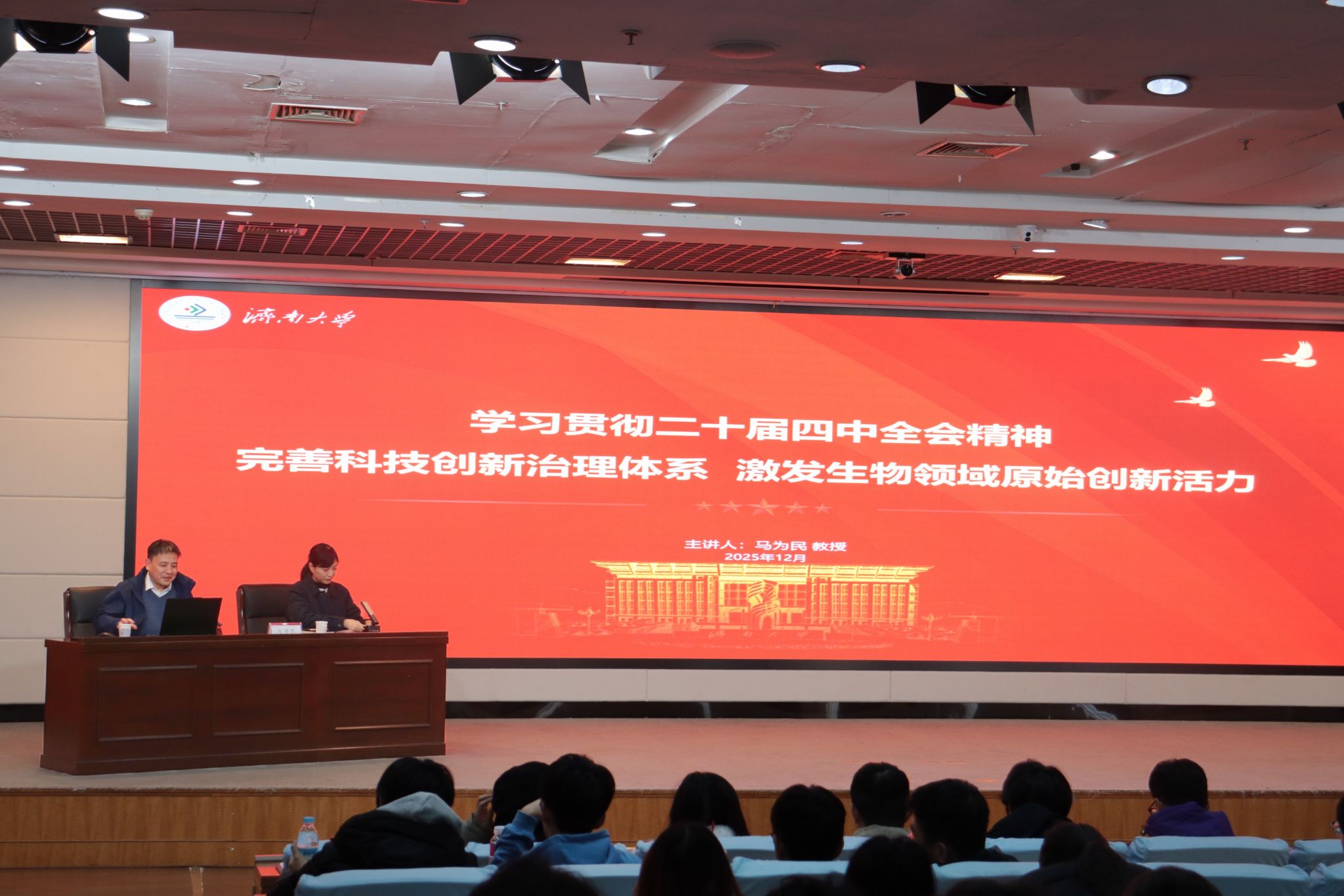 为深入学习贯彻党的二十届四中全会精神,系统把握“十五五”时期的指导思想、目标任务与战略部署,切实把思想和行动统一到党中央决策部署上来,以高水平学习成效赋能学院高质量发展,12月23日下午,英国上市公司365在第一学术报告厅举办“泉城大讲堂”主题报告会。本次报告会特邀中国藻类学会常务理事、全国光合作用专业委员会委员、上海市一碳生物技术专委会副主任马为民教授主讲。学院师生党员代表、“青马工程”学员、入党积极分子以及2025级全体学生参加。报告会由学院党委副书记、副院长杜艳主持。